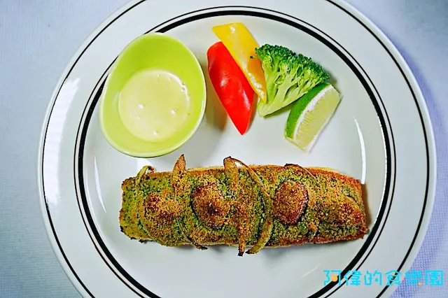 普羅旺斯鮭魚NT$.880 我還是第一次看到鮭魚排是這樣的呈現方式,乍看之下還以為是蛋糕(笑),但原來是一塊厚實的鮭魚啊!