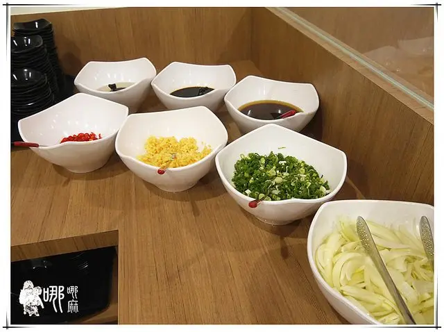 桌上的調味盤裡的調味料和一般火鍋不大一樣,