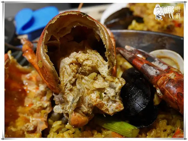 波士頓龍蝦海鮮好飯加了整隻龍蝦和一些貝類、墨魚,