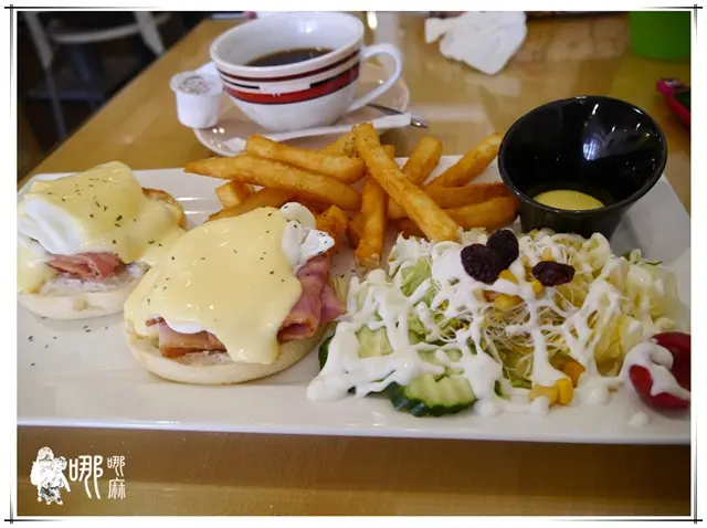 會看上這間是因為提供的早午餐裡頭有~~~班尼迪克蛋!!!哪哪麻一直很想吃說。
