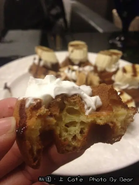 口感和一般人常吃的那種鬆軟的鬆餅不大一樣,這裡是屬於酥脆型的