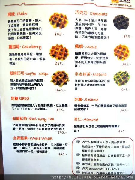 提供不少的口味可選擇,這邊的鬆餅都是強調使用天然、高品質的食材