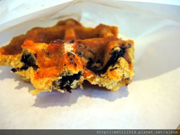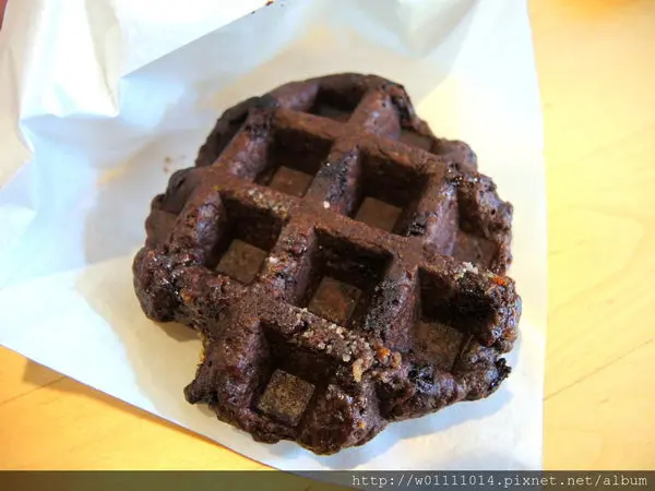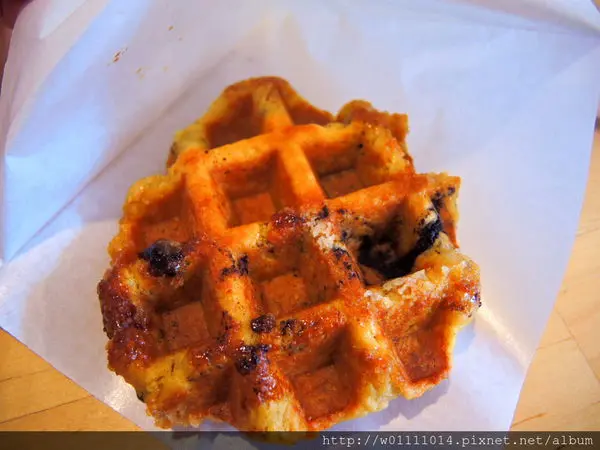 使鬆餅烤完後外皮酥脆、帶有焦糖色,食用時也會吃到一顆一顆未融化的粗糖粒