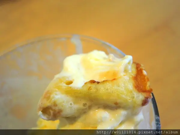 搭配鬆餅一起入口,口感更滑順~再沾裹上一點焦糖醬,味道更豐富更提升