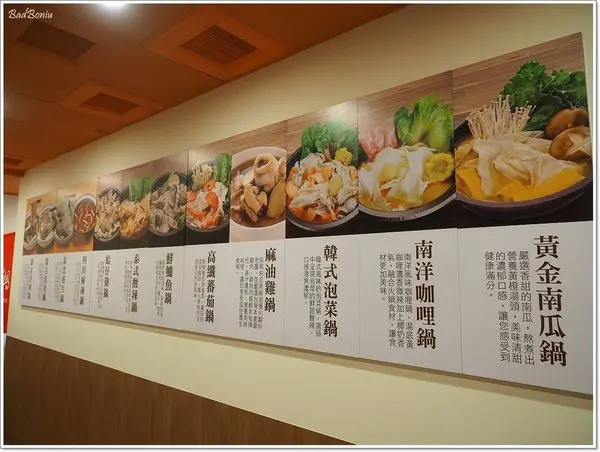 牆面有鍋物的介紹,種類還蠻多的,看起來也都有獨到的地方! 連麻油雞鍋都有ㄟ~