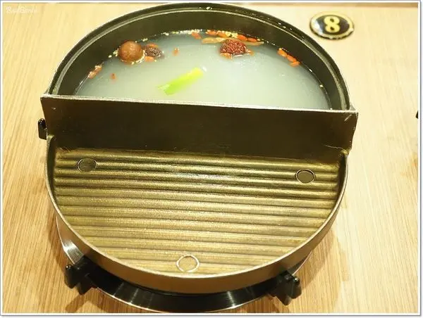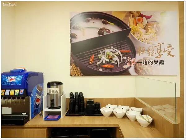 牆上的「一鍋一烤」就是半個鍋主打的訴求啦,一個人來吃飯輕輕鬆鬆又有鍋又有烤。飲料與養生茶可以無限暢飲