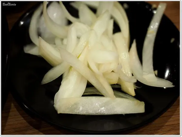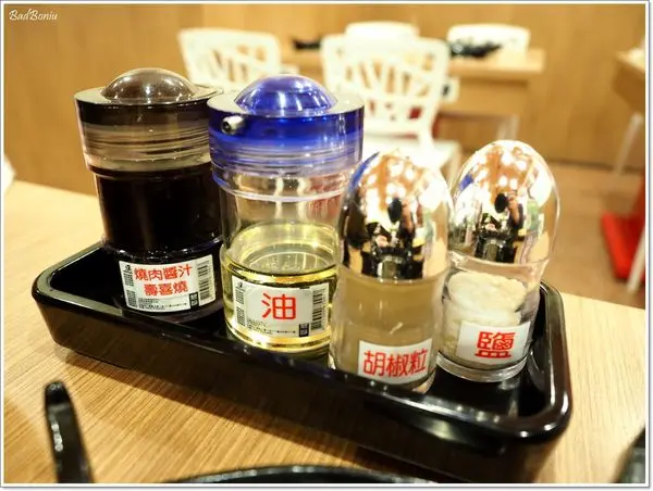 桌上的調味罐幾乎都派得上用場! 燒肉醬汁拿來淋在燒肉上很入味,甚至拿來做壽喜燒(拿來做壽喜燒這罐大概不夠用,老闆一定沒想清楚)。油在一開始拿來炒大蒜與洋蔥,讓烤肉提味;鹽巴拿來撒在烤肉上(就不要再加醬了)吃原味也不錯。