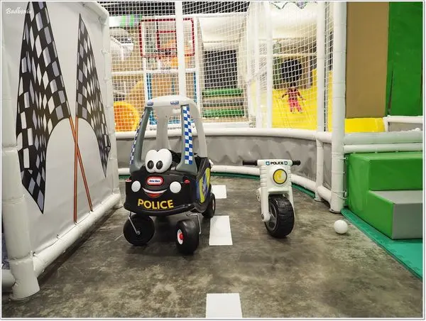 遊戲區內有兩台小車車可以讓小朋友化身小飆仔。
