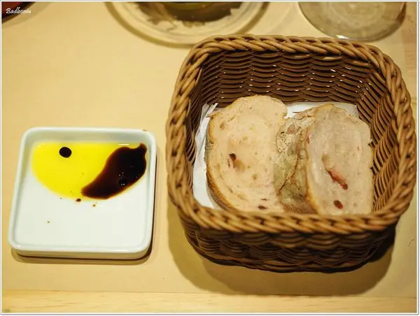 麵包是蔓越莓麵包,很健康的口感,有附油醋沾醬,但我覺得不用沾味道就很夠了。