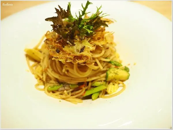 因為波妞媽感冒沒什麼食欲,所以點了這道清炒時蔬義大利麵($240)。