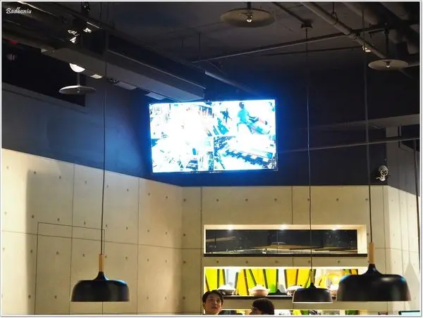 餐廳內有個大螢幕,大人可以藉著這個螢幕顧著自己的小孩。