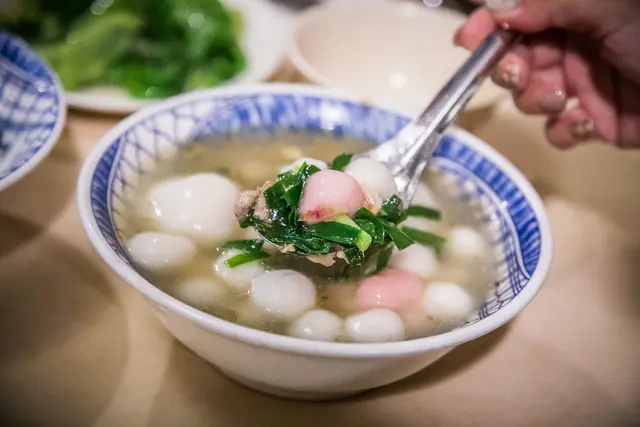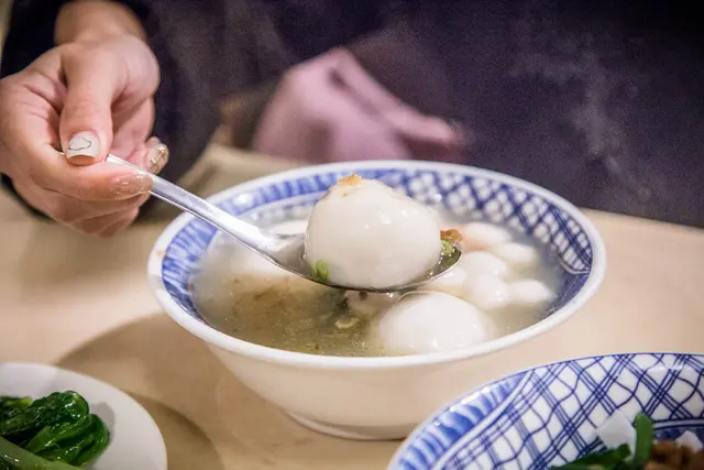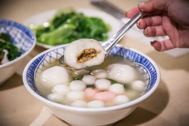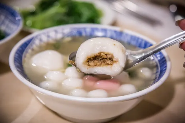 最讚的還是鮮肉大湯圓,是我目前吃過最大顆的,有夠重啦!皮很軟Q,重點是裡面的肉餡有夠讚,不像一般鮮肉湯圓是肉丸,裡面是細緻的鮮肉,每一口都可以吃到內餡跟湯圓的平衡口感,比起包肉丸的湯圓,我更愛這種!