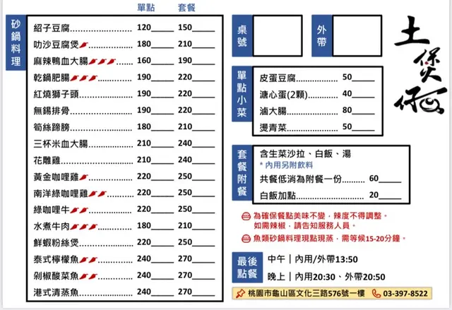 桃園、林口美食推薦這家土煲仔砂鍋飯,土煲仔砂鍋飯乍聽之下會覺得是港式的煲仔飯,但吃過才知道,土煲仔砂鍋飯賣的是砂鍋菜,而且是一鍋一鍋烹調,將食材的美味藉由不同的烹調方式濃縮在一個個小砂鍋裡,就算只有一個人也可以品嚐砂鍋料理囉!