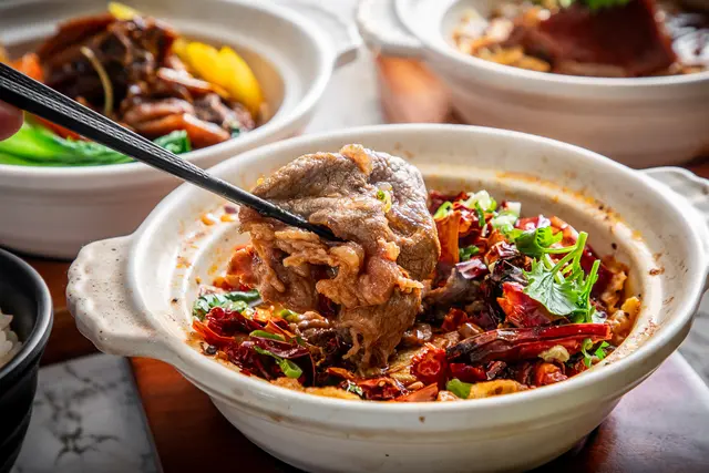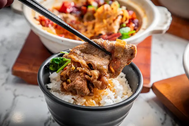 使用川式調料調味,辣度合宜帶點甜香及麻香感,川麻香氣十足,牛肉又很嫩,超級下飯!裡面還有加了吸飽湯汁的豆皮,而且這裡的米飯超好吃,高級有機米就是不一樣