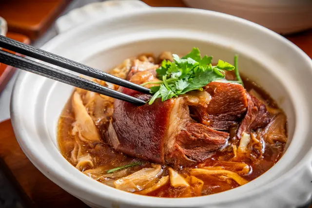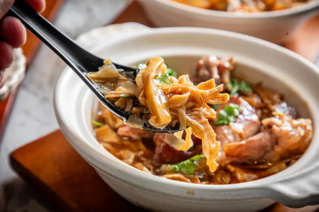 筍絲蹄膀,沒想到一個人也能吃蹄膀,一個大菜小做的概念,雖然是小份的但口味一點也不馬虎,連瘦肉的部分都超軟嫩!蹄膀皮Q彈,肉質入口即化,中間的膠質感相當厚重,帶有濃濃的醬香醍醐味,配上口感軟嫩筍乾,可以緩和蹄膀的油膩感,下面的醬汁融入蹄膀的肉汁跟筍乾的甜香,不吃肉光是湯拌飯就夠銷魂的!