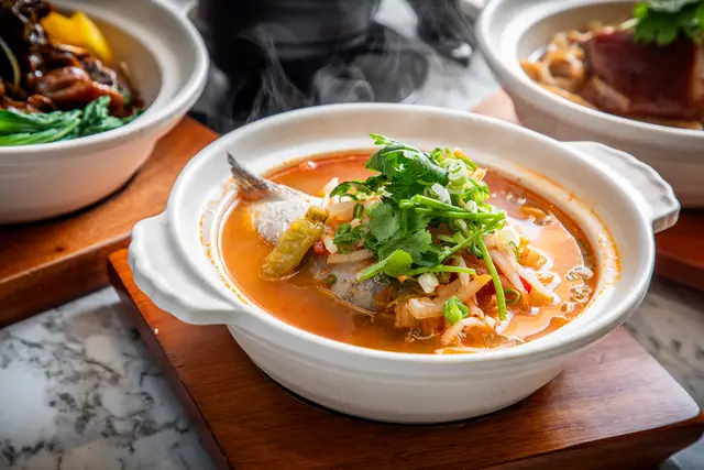 剁椒酸菜魚,鱸魚經過烹調後,保持了其自然的嫩滑和鮮美,每一口都能感覺到魚肉的滑膩與嫩度,再來酸筍的酸爽和剁椒的辣味相互搭配,煮魚的湯汁浸透了酸筍和剁椒的味道,十分醇厚,每一口都能嚐到滿滿的湯汁,有魚的鮮美,又有酸筍剁椒的特色風味,超好吃!