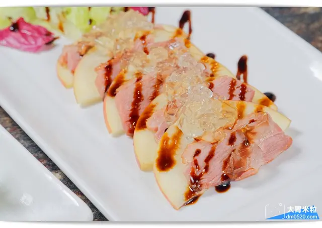 淋上巴薩米克紅酒醋吃起來有檸檬的酸加上蘋果的脆甜,