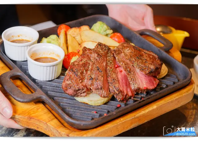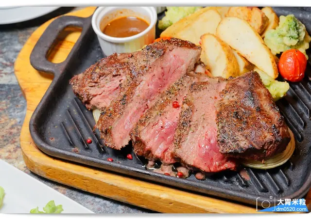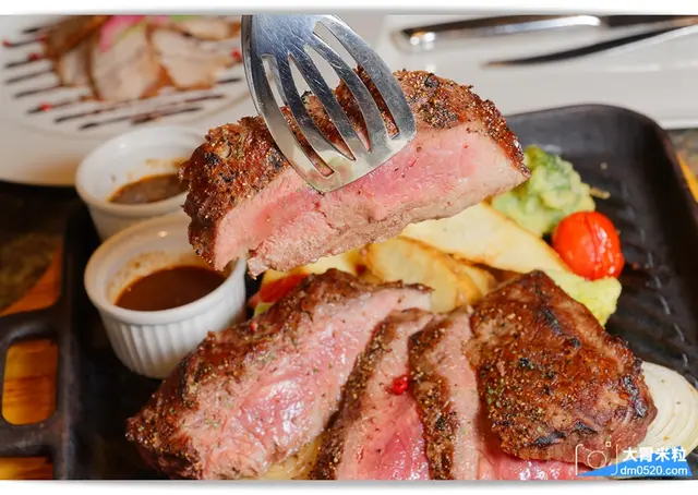 接著主餐登場囉!嚴選美國安格斯嫩肩牛排,五分熟度看起來鮮紅欲滴!