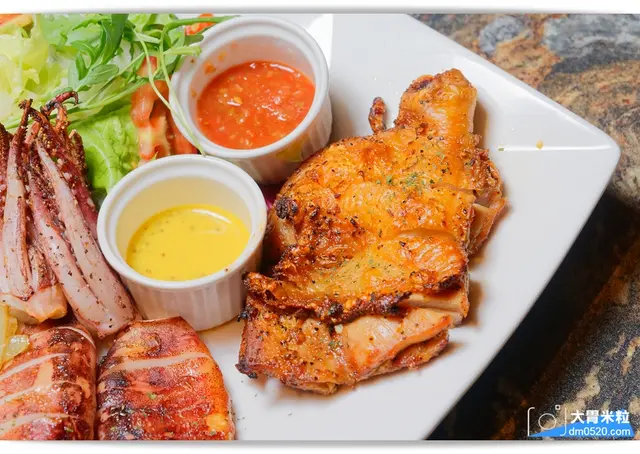 拼盤是新推出的餐點,內含整尾小卷、雞腿排與松阪豬,