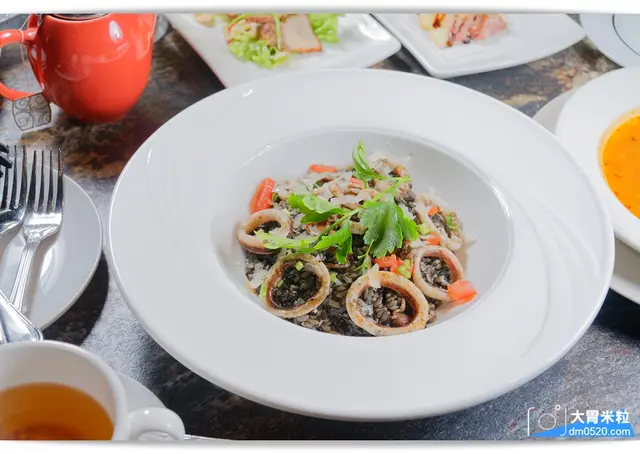 濃郁黝黑的烏賊燉飯,黑嚕嚕的醬汁,一入口海味滿點!