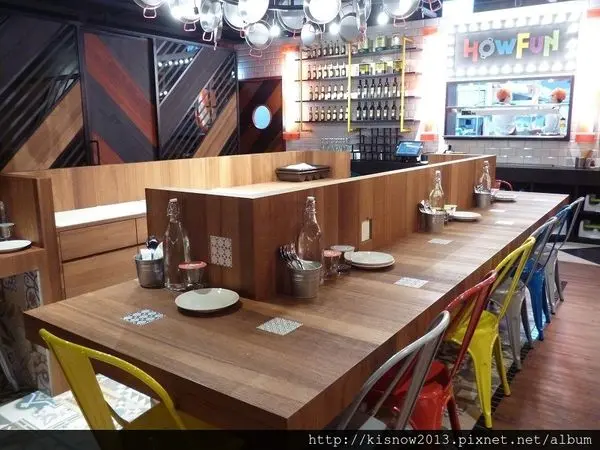 不曉得是否靠近醫院?也不曉得是否不是假日,環球百貨公司的A8比其他百貨公司多了一份安靜,不像其他百貨公司吵雜喧鬧,Howfun好飯食堂(林口環球A8店)位於百貨公司二樓的一隅,彩色明亮的文字招牌相當吸引路過的行人,店內空間不大,彩色的椅子配合清淨的桌面,意外有一種熱鬧繽紛的氣氛.