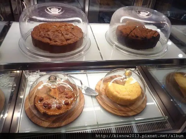 再來細細的尋找,眼光所在之處,剛好是甜點所在之處,看到櫃枱前面冷凍櫃有放置蛋糕,包括磅蛋糕,半熟乳酪蛋糕和比利時巧克力蛋糕等,蛋糕種類不多,樣式也不算華麗,但看起來也是相當誘人.