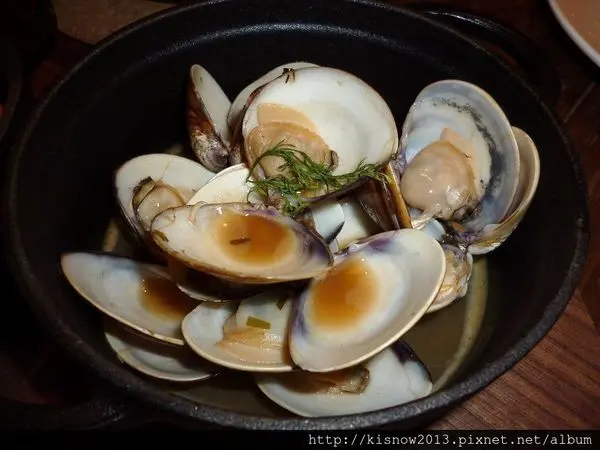 蒜香白酒蛤蜊所採用的蛤蜊体型都是中等,蛤蜊吐沙乾淨,肉質飽滿細嫩,吃得到蛤蜊的新鮮,只是口感上比較偏鹹,鹹度比較重,摻雜一點白酒的苦味.