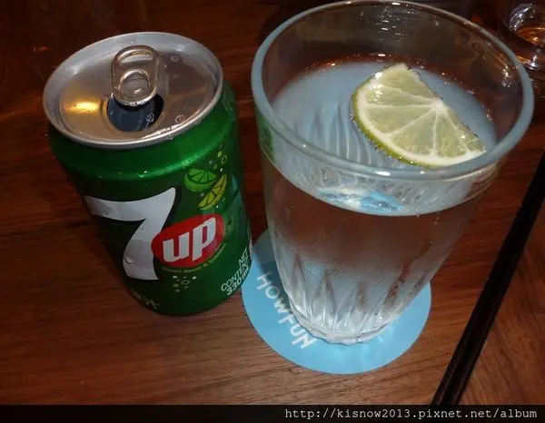 這次飲料部份我是選擇冰紅茶和七喜汽水,七喜汽水採用鋁罐,喝的時候只要把汽水倒入杯中,此時杯子內的小檸檬片飄浮上來,喝起來的口感除了冰涼,還有檸檬的微酸和剌激感;冰紅茶喝起來的口感微甜清淡,茶香和苦澀味不明顯,可以加入牛奶變成冰奶茶,即使變成冰奶茶,甜度依然清淡,多了一分濃郁感,喝起來卻是相當舒爽.