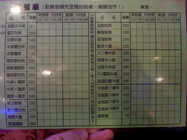 排餐如預期在一兩百的價位為主,當然想吃高價牛排,也有安格