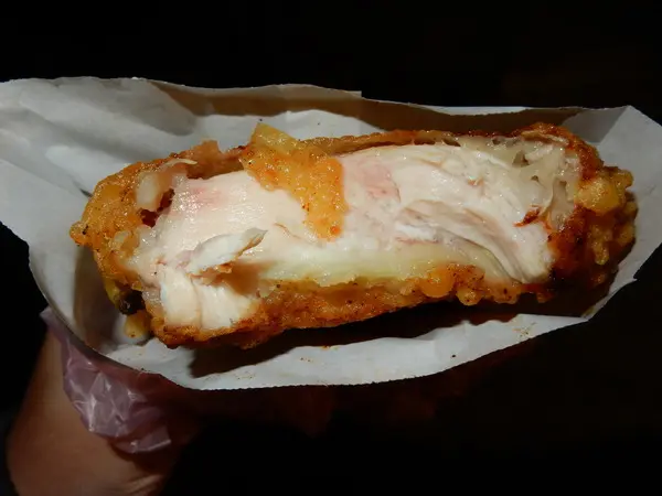 雞排的大小約手掌再大些,厚度至少有兩三公分。裡面的雞肉未因厚