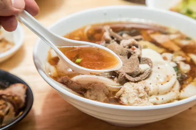 片狀的豬肝,吃起來軟嫩不老,豬肉片應該是用里肌部位,口感也是嫩嫩滑滑的,搭配甘美的湯頭好吃!