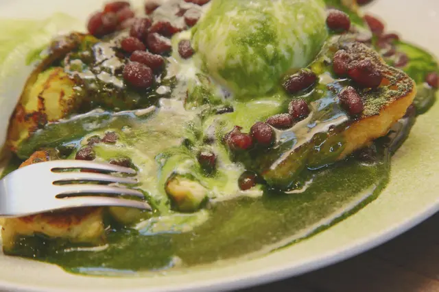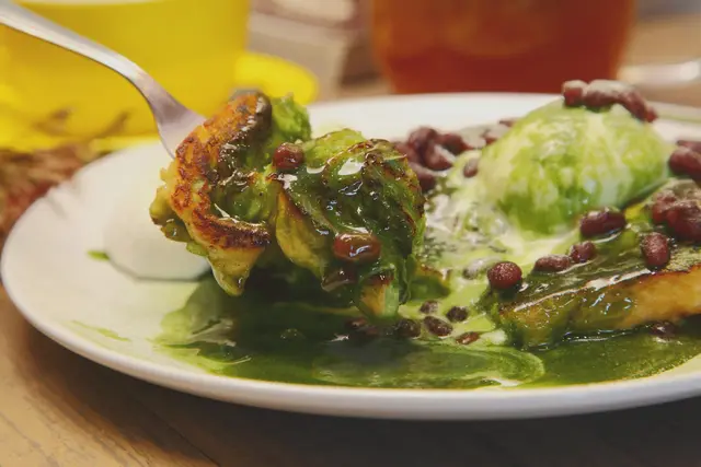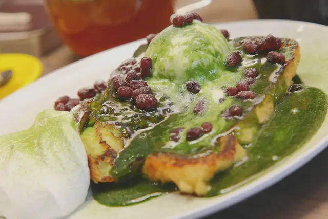 老闆使用的是靜岡的頂級抹茶,再將抹茶製作成抹茶醬,下手毫不手軟,簡直就是抹茶海,入口有著濃郁的抹茶清香,加上微甜的蜜紅豆及丹麥塔的蛋奶香,軟綿之間帶著抹茶清雅的香氣,宇治抹茶紅豆太無敵了!