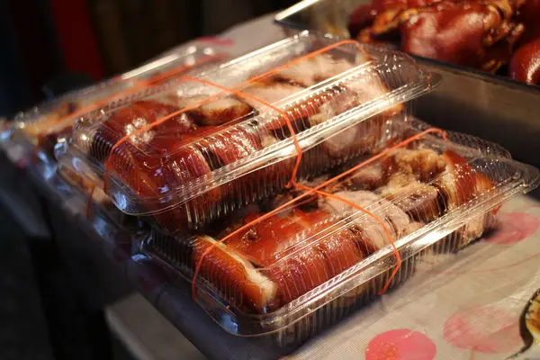 回程,我媽看到萬巒豬腳一盒100就買了。回家享用覺得有點頗鹹,配飯、帶便當也適合。