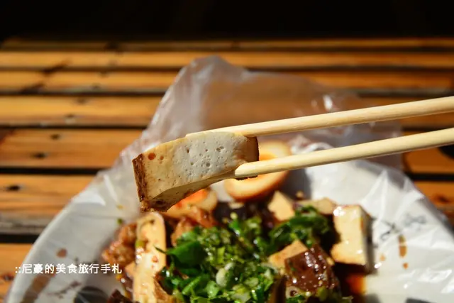 豆干吃起來香Q有嚼勁,豆香味混和著醬料的蒜味