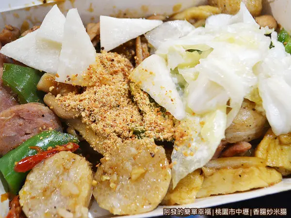 這回就先來介紹,阿發在其他夜市中沒印象有看過,也是許多人大推逛中原夜市必吃的「香腸炒米腸」~