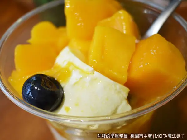 再放入幾個如黃寶石般的新鮮芒果丁,