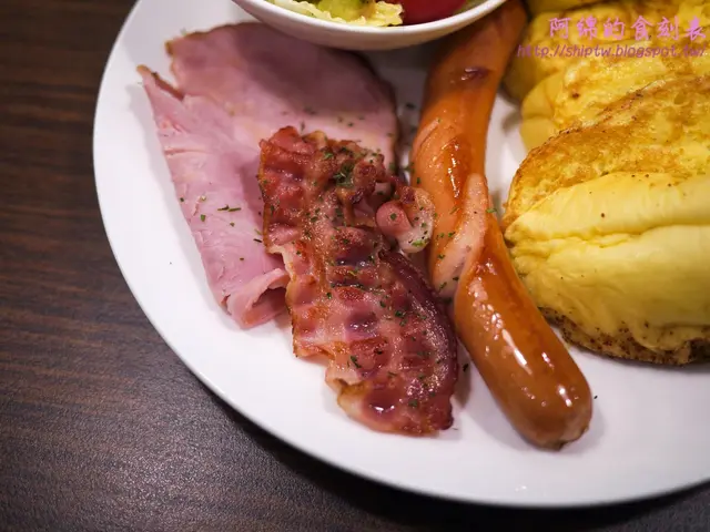 我是最初的客人之一,很多都看在眼裡,當然也用相機記錄下來了,像是原本空白的牆壁多了藝術品,空空的櫃子多了擺飾,早午餐原始擺盤是沒有水果,後來多了兩片水果,德式香腸原本是沒有刀切痕跡,後來有刀切痕跡...。