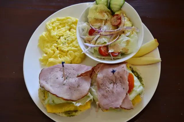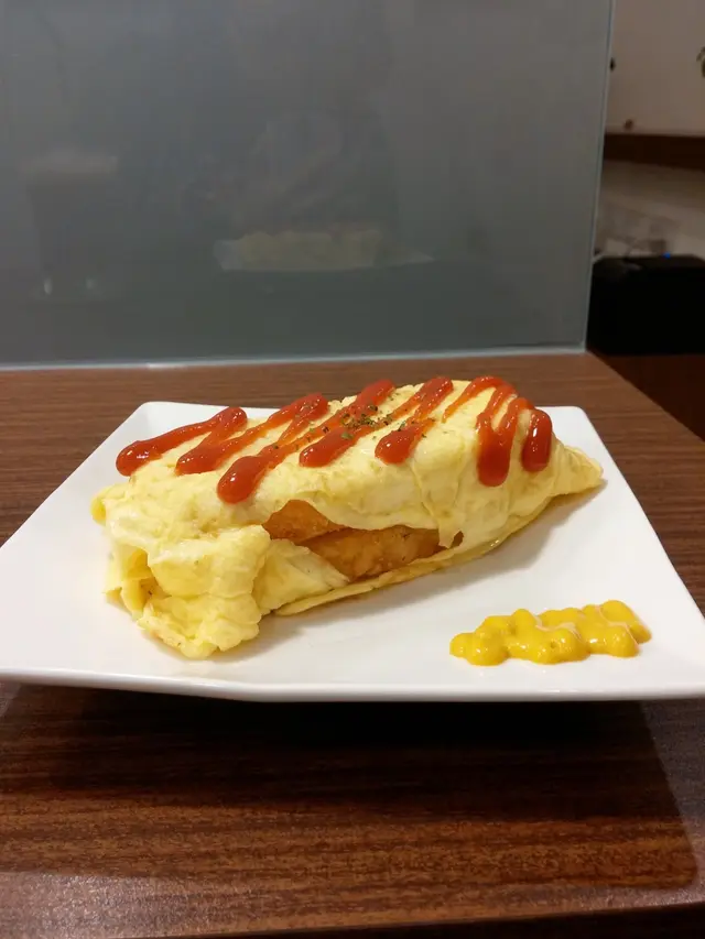 用蛋皮包住兩塊厚薯餅+起司片,外層淋上蕃茄醬,灑一點香料葉,我點過 2~3次,薯餅的鬆軟搭融化的起司在口中翻滾,提味蕃茄醬又帶入一點酸甜,簡單的幾樣東西組合起來口感倒是挺豐富又有層次。