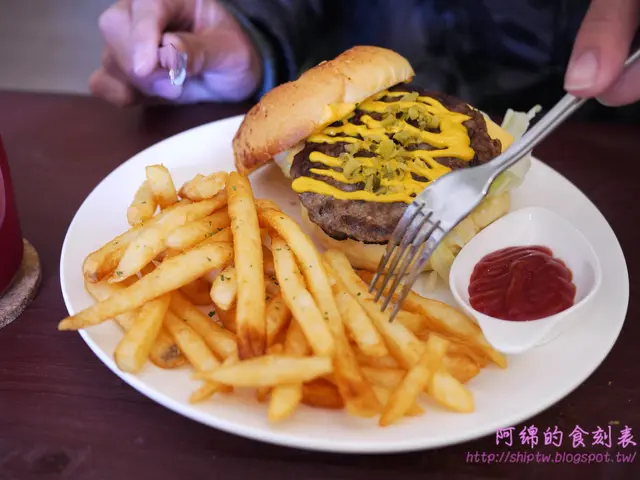 幾乎每次都要點這套餐來吃,麵包、3.5oz 牛肉漢堡排、兩片起司、洋蔥、一大捲生菜組合完畢再淋上黃芥苿醬、加一點酸黃瓜,就是經典、就是好吃,我想不出什麼形容詞來形容這美味。