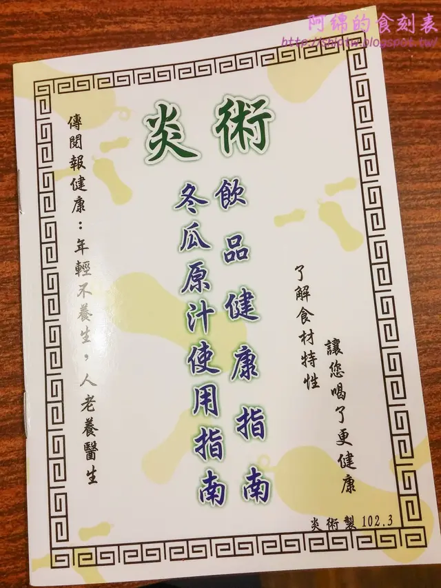 已經被我喝了一大口的冬瓜茶,朋友是說像小時候喝的四方型鋁箔包冬瓜茶,我是覺得炎術比較內斂,比小時候冬瓜茶多了一個香氣,後來才知道是麥芽糖香氣。店家是用黃金比例下去調製,可以讓人一口氣喝光光。