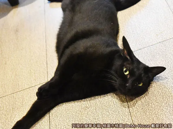 ▲躺平的小黑貓吉吉(店貓之一,也是流浪貓)