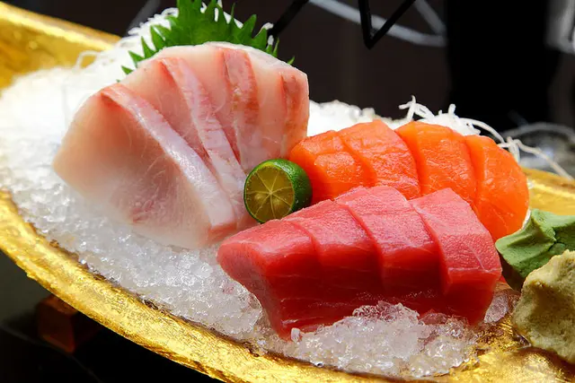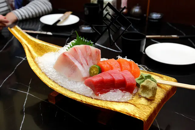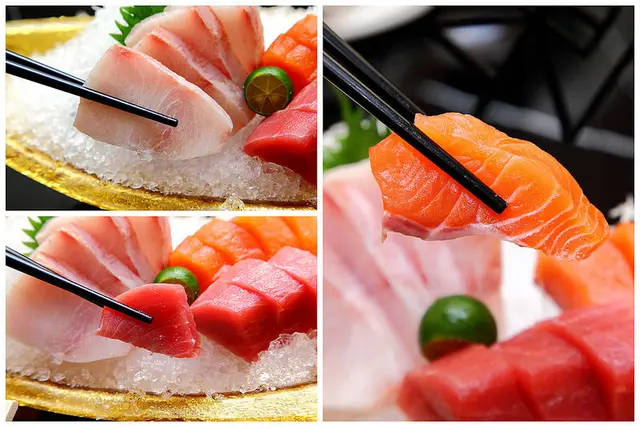 所以每天提供的生魚片種類也會不大一樣,今天是海鱺、鮭魚,鮪魚