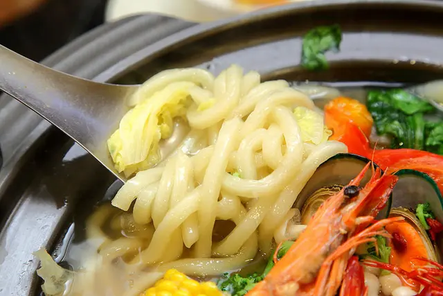 更過分的是湯裡竟然還加了Q彈的烏龍麵!烏龍麵吸收海鮮的甜味,讓人停不下手中的筷子