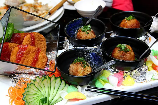 金銀炸薯球,也是主廚的創意菜,是用芋頭跟地瓜做成的