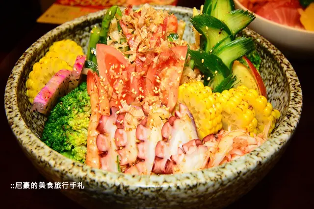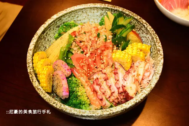這次我們共點了兩個蓋飯,一個是上圖的生魚片蓋飯