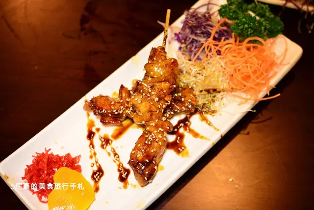 看這雞肉串上面的醬料光澤,還有加上滿滿芝麻
