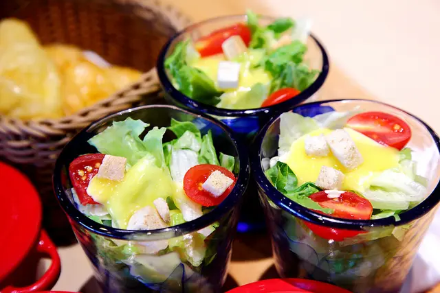 升級套餐的附餐,容器倒是看起來有用心,玉米濃湯是用小湯鍋裝,生菜沙拉是用玻璃杯裝,還蠻可愛的