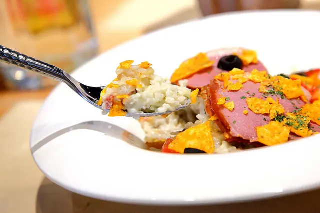 不過搭上多力多滋玉米脆片口感真的突兀!再加上不搭的鹹辣調味,沒有多力多滋反而還比較好吃