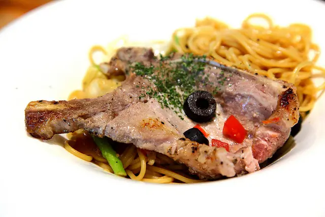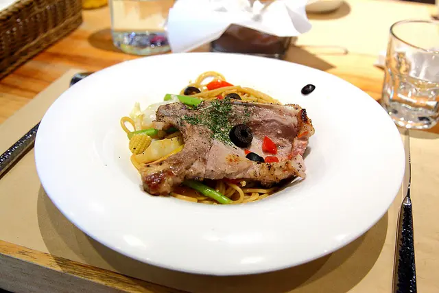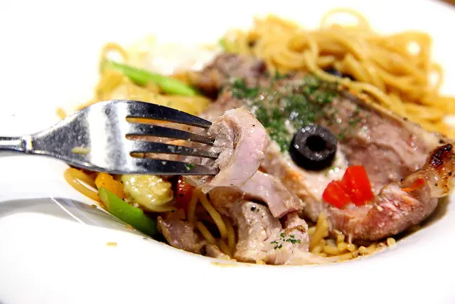 烏斯特蒜香義大利麵搭戰斧豬排