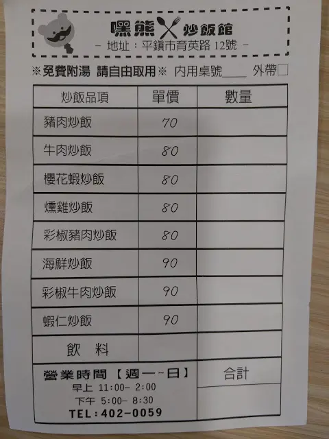 在中壢平鎮的炒飯推薦裡,總能見到嘿熊炒飯的名字,網路評